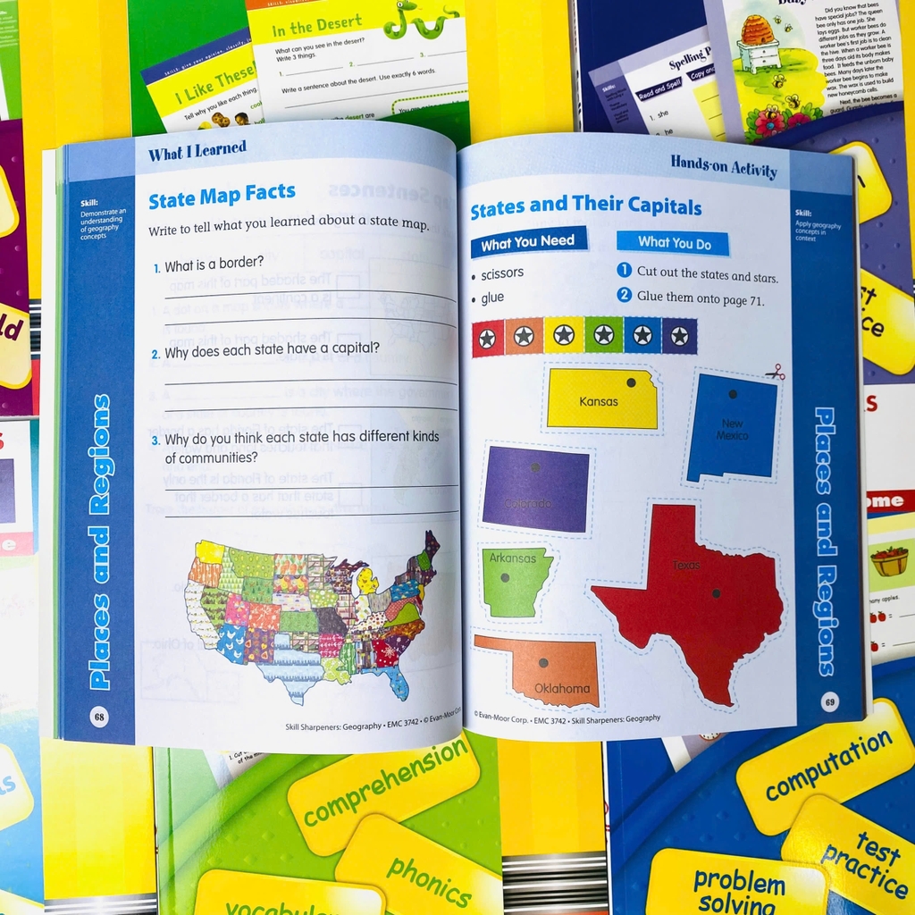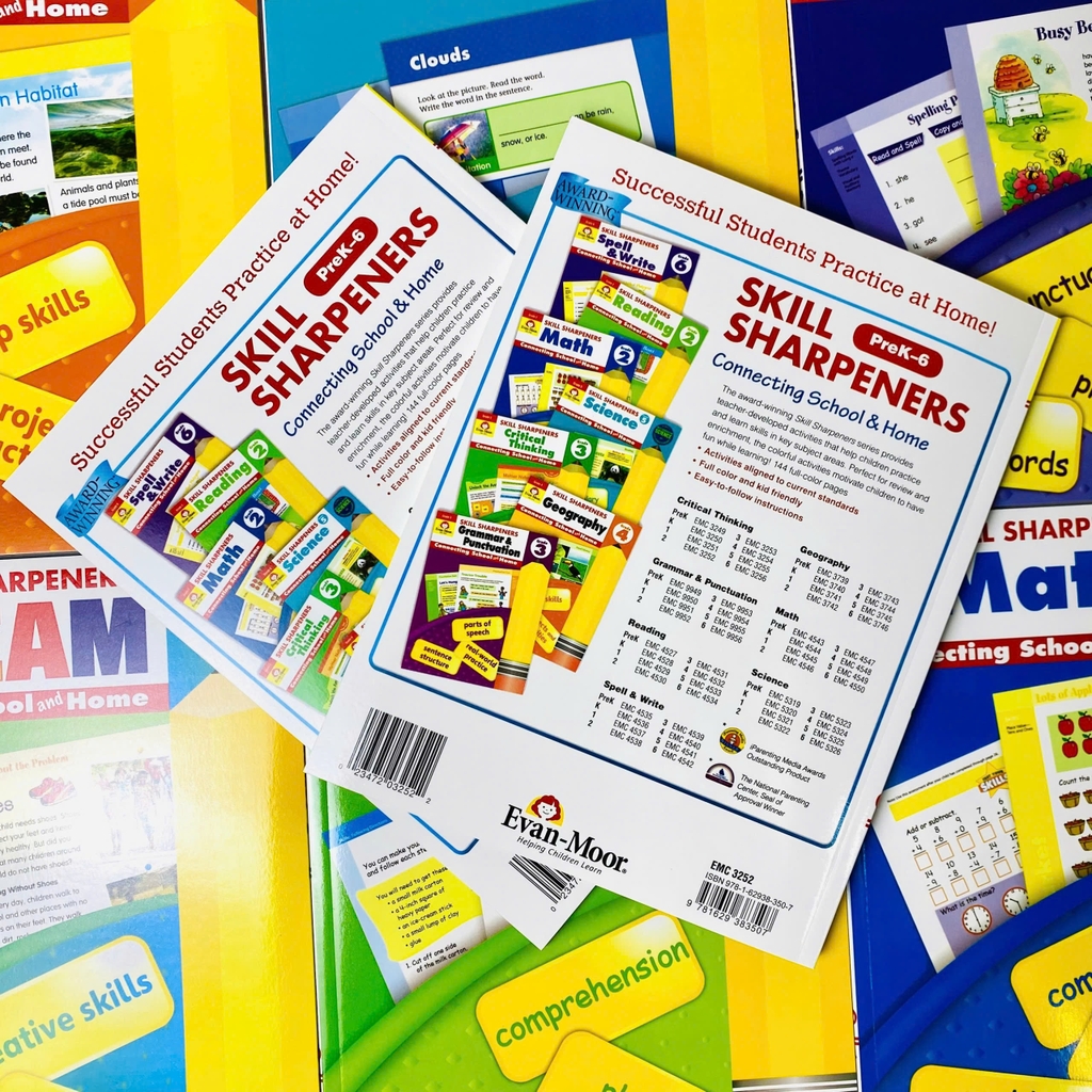 Bộ sách Skill Sharpeners Grade Pre K của Evan-Moor, nhà xuất bản giáo dục nổi tiếng của Mỹ, là bộ sách bài tập thường được trẻ em Mỹ sử dụng. Bộ sách này được sử dụng rộng rãi trong các trường mẫu giáo của Mỹ với nội dung rõ ràng và có hệ thống. Bộ sách giúp trẻ tăng cường hiểu biết về kiến thức đã học và ứng dụng vào thực tế.