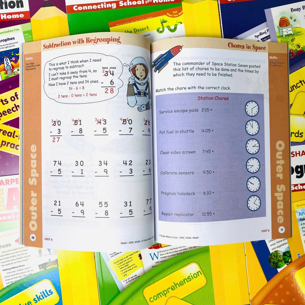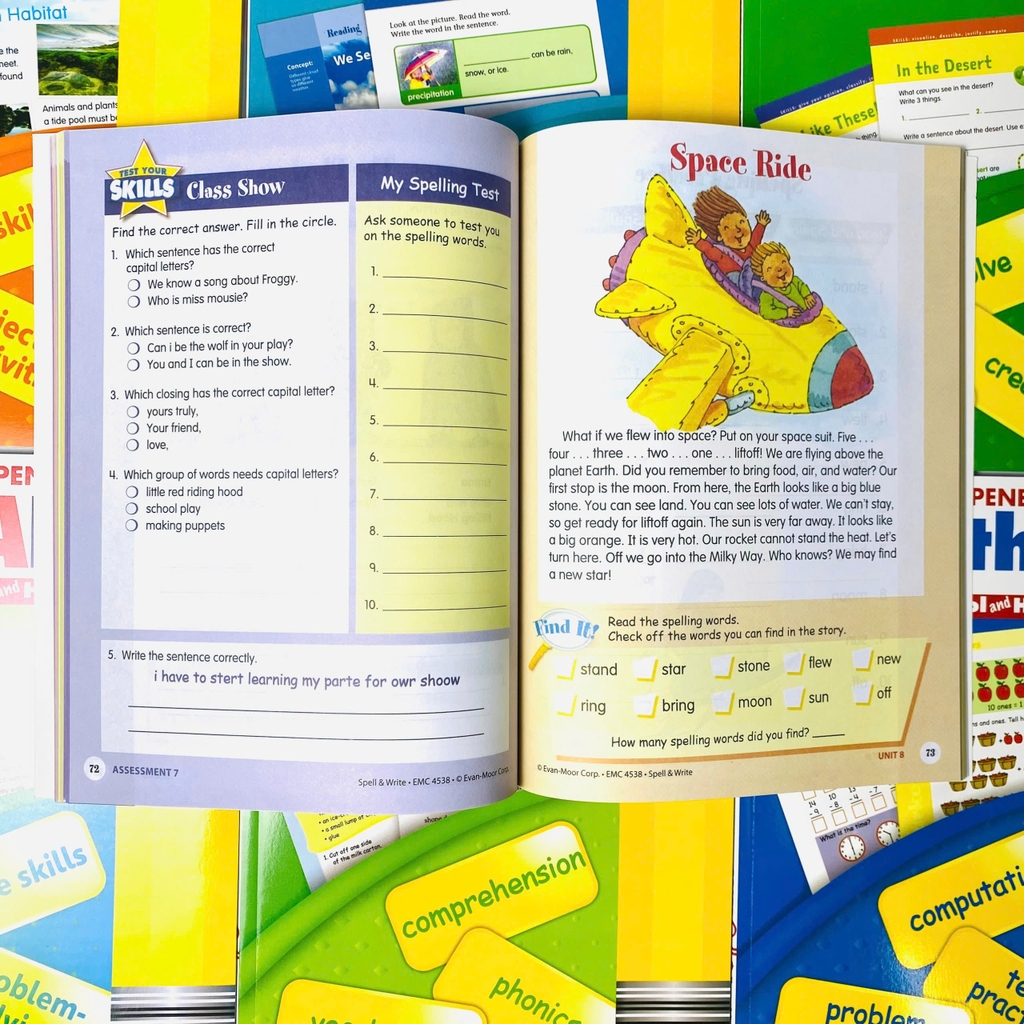 · Bộ sách cung cấp cho trẻ toàn bộ kiến thức từ cách đánh vần, cách viết, cách đọc, ngữ pháp cũng như kiến thức về Toán học, Địa lý, Khoa học và Tư duy phản biện