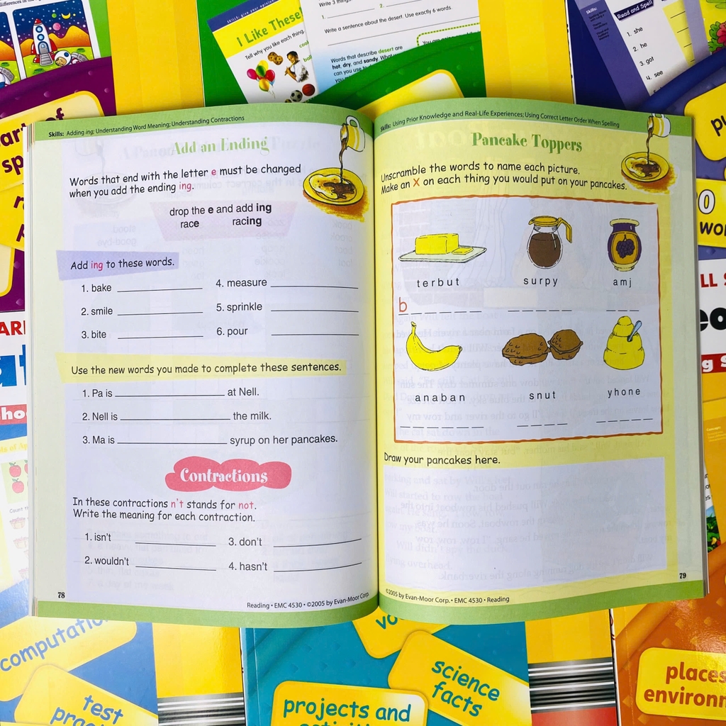 · Các bài tập rất đơn giản và dễ hiểu. Câu trả lời nằm ở cuối sách, rất dễ sử dụng Và tất cả các bài tập đều có một điểm chung là các khái niệm được giải thích rõ ràng, giúp trẻ vận dụng linh hoạt vào thực tế. Bộ sách giúp trình độ tiếng Anh của trẻ được cải thiện rất nhiều trong quá trình luyện tập!