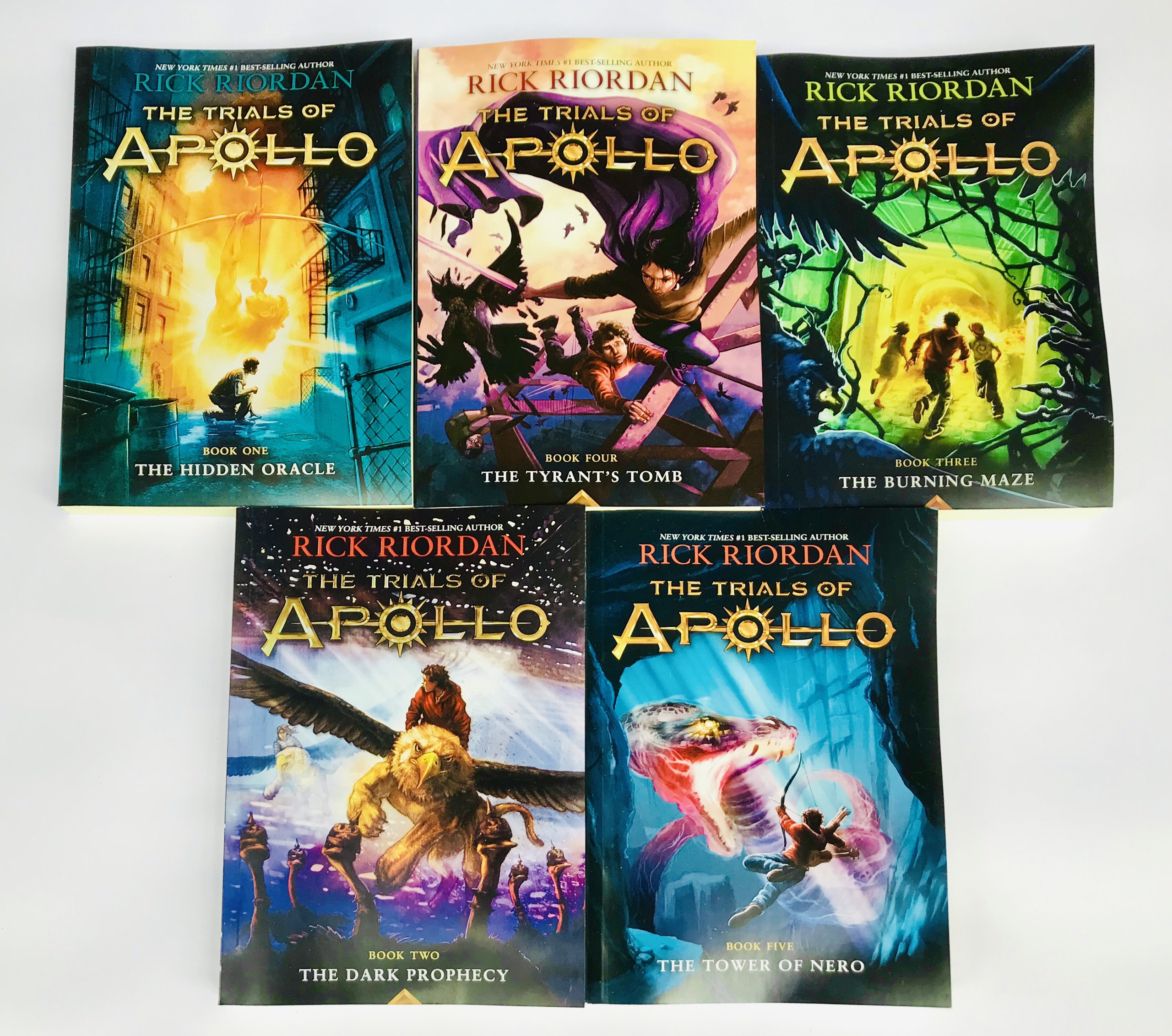 Các cuốn sách trong loạt "The Trials of Apollo" bao gồm:"The Hidden Oracle" (2016) - Ngôi đền bí ẩn"The Dark Prophecy" (2017) - Lời tiên tri đen tối"The Burning Maze" (2018) - Lặng thầm trong ngọn lửa"The Tyrant's Tomb" (2019) - Ngôi mộ của bạo chúa"The Tower of Nero" (2020) - Tháp Nero