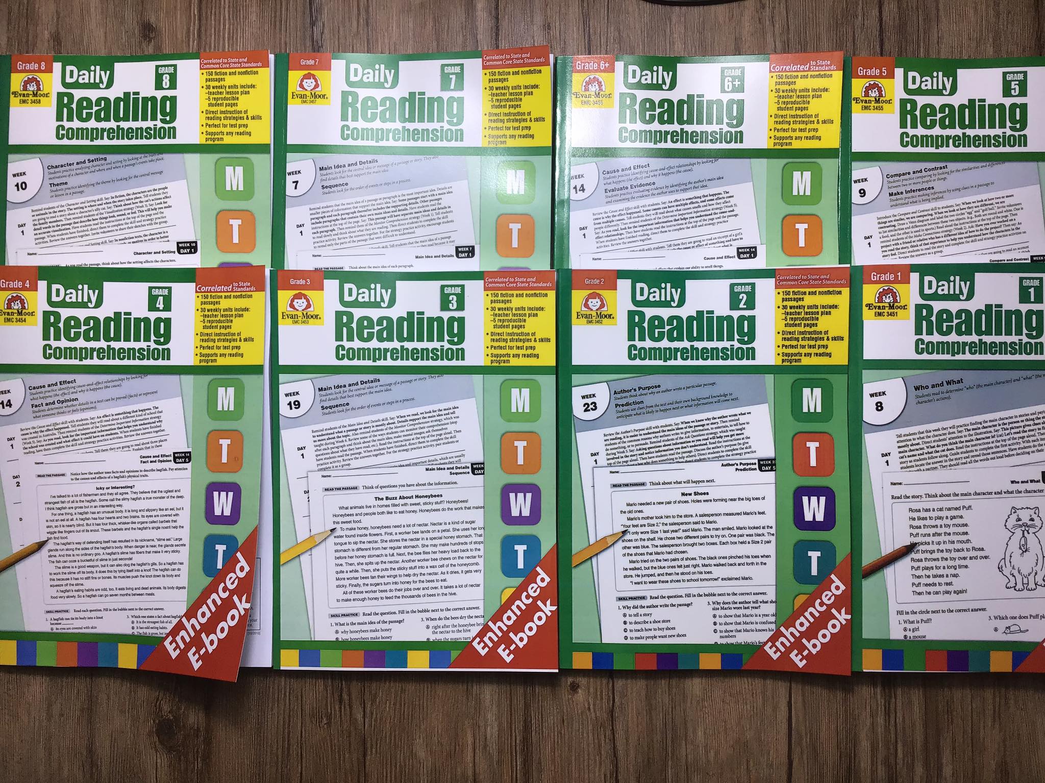 Điều đặc biệt của bộ sách Daily Reading Comprehension là sử dụng dạng bài viết có kèm câu hỏi trắc nghiệm ngay sau khi đọc để các bé củng cố lại kiến thức. Nếu phụ huynh muốn giúp con bắt đầu học tại nhà và cần tài liệu trợ giúp để tìm ra các cách đọc khác nhau, đây sẽ là một lựa chọn tốt vì bộ sách có chia mức độ theo thời gian ngày tháng để học sinh học hàng ngày.