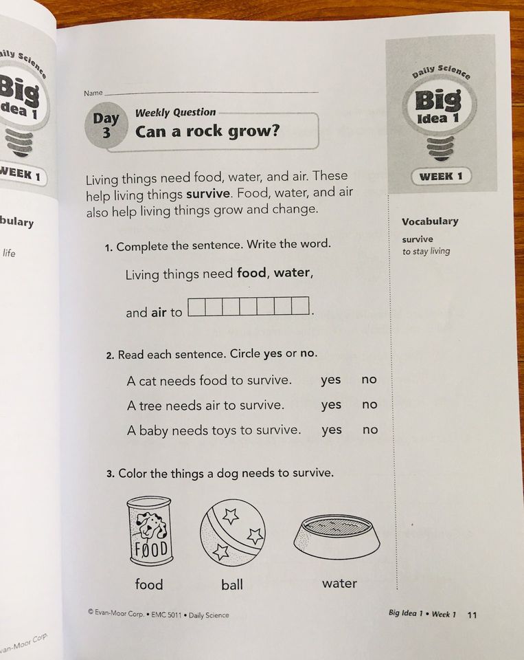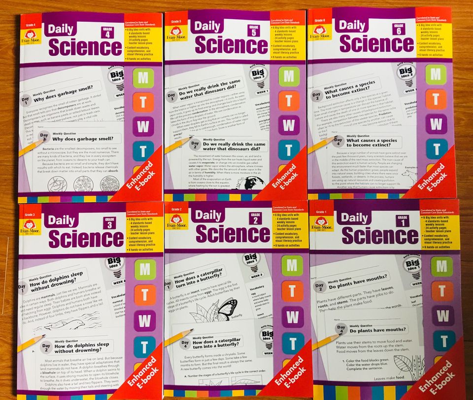 Bộ Daily Science của Evan-Moor sẽ giúp các con học khoa học trong các hoạt động hàng ngày được thiết kế riêng! Daily Science bao gồm 30 tuần với các bài học truy vấn dựa trên những tiêu chuẩn khoa học quốc gia và được phổ biến dưới nhiều hình thức, kiến thức, để trau dồi các kỹ năng đọc viết trong khi khám phá các khái niệm chính về trái đất, cuộc sống và khoa học vật lý.