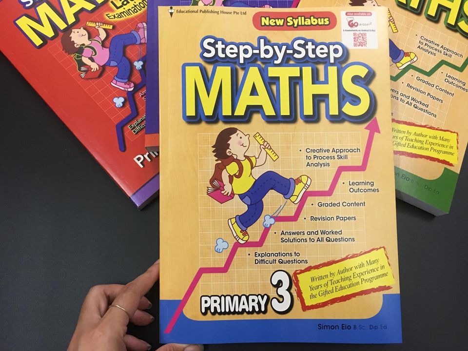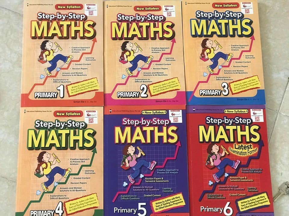 - Bộ sách toán “Step by Step- Maths” là một bộ sách dạy toán cơ bản của Singapore giúp trẻ hiểu được các khái niệm toán cơ bản trong tiếng anh.
